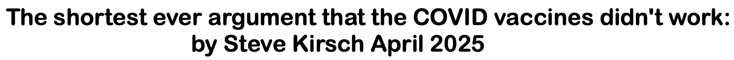 Fast forward to the conclusion: “The evidence is clear: these vaccines have caused deaths. Despite that, they have been described as “safe and effective”. However, for a proportion of people who took them, the vaccines have caused serious harm and death, and they will have raised the risk of cancer for many more. Nor are they effective. The vaccine does not prevent infection or transmission, and when the data is looked at objectively, it shows that the vaccine does not prevent serious illness or death. Those are hard truths to face, but we must face them if we want to learn the lessons of the last few years. At some point we will have to face up to all the evidence that is building. It was fairly convincing 18 months ago when I first spoke out, but it is unequivocal now."