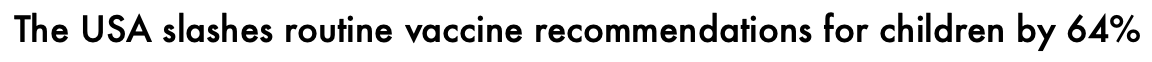 In December President Trump ordered changes to the immunisation schedule and directed Kennedy and the CDC to review vaccine recommendations. Vaccine hesitancy and concerns regarding their safety and long term adverse side effects has been growing steadily for decades. Experts are noticing an ongoing trend regarding reduced public confidence in mandatory vaccine schedules. Which also raises the question: if, as we have been led to believe, all infant and childhood vaccines have been ‘proven’ to be necessary, safe and effective, then why are the revised US childhood immunisation guidelines being so radically reduced? The new recommendations were made in response to an executive order signed by President Trump in December, the US health department said. That order instructed US health officials to compare the country to "peer developed countries" and make recommendations.